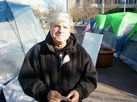 "I'm here because I couldn't (otherwise) live with myself," he said on the morning after Thanksgiving day, standing in front of a small village of blue, green and white Occupy Memphis tents near the trolley line on north Main Street.